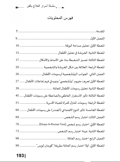 يقدم لك الكتاب منهجية حديثة وعملية لتحويل الرسم البسيط إلى خريطة نفسية  تكشف التحديات الأسرية والمدرسية التي يواجهها الطفل. مستلهماً من أبحاث رواد العلاج بالفن، يضع هذا الكتاب بين يديك أدوات تشخيصية وعلاجية مبتكرة لتعزيز نقاط قوة الطفل ودعمه في مسيرته النفسية والاجتماعية.